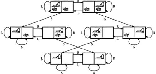 - Функция определения преемника. Эта функция вырабатывает допустимые состояния, которые являются следствием попыток выполнения трех действий (Left, Right и Suck). Полное пространство состояний показано на рисунке.