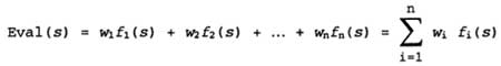 где каждый коэффициент wi представляет собой вес, а каждая функция fi оценивает некоторую характеристику позиции. В шахматах функция fi может определять количество на доске фигур каждого вида, а коэффициент wi — оценивать стоимости этих фигур A за пешку, 3 за слона и т.д.).