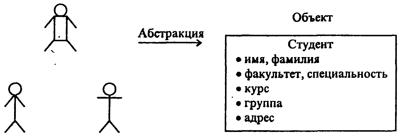 Остановимся на информационных моделях, отражающих процессы возникновения, передачи, преобразования и использования информации в системах различной природы. Начнем с определения простейших понятий информационного моделирования. Экземпляром будем называть представление предмета реального мира с помощью некоторого набора его характеристик, существенных для решения данной информационной задачи (служащей контекстом построения информационной модели). Множество экземпляров, имеющих одни и те же характеристики и подчиняющиеся одним и тем же правилам, называется объектом.  Рис. 2. Пример абстрагирования при построении информационной модели Таким образом, объект есть абстракция предметов реального мира, объединяемых общими характеристиками и поведением, рис. 2. Информационная модель какой-либо реальной системы состоит из объектов. Каждый объект в модели должен быть обеспечен уникальным и значимым именем (а также идентификатором, служащим ключом для указания этого объекта, связи его с другими объектами модели). Таким образом обозначение, наименование объекта -это элементарная процедура, лежащая в основе информационного моделирования. Объект представляет собой один типичный (но неопределенный) экземпляр чего-то в реальном мире и является простейшей информационной моделью. Объекты представляют некие “сущности” предметов реального мира, связанные с решаемой задачей. Большинство объектов, с которыми приходится встречаться, относятся к одной из следующих категорий: - реальные объекты;