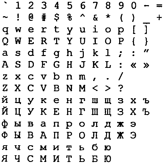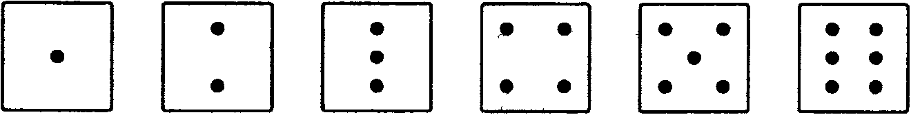 Информация передается в виде сообщений. Дискретная информация записывается с помощью некоторого конечного набора знаков, которые будем называть буквами, не вкладывая в это слово привычного ограниченного значения (типа “русские буквы” или “латинские буквы”). Буква в данном расширенном понимании – любой из знаков, которые некоторым соглашением установлены для общения. Например, при привычной передаче сообщений на русском языке такими знаками будут русские буквы – прописные и строчные, знаки препинания, пробел; если в тексте есть числа – то и цифры. Вообще, буквой будем называть элемент некоторого конечного множества (набора) отличных друг от друга знаков. Множество знаков, в котором определен их порядок, назовем алфавитом (общеизвестен порядок знаков в русском алфавите: А, Б,..., Я). Рассмотрим некоторые примеры алфавитов. 1, Алфавит прописных русских букв: А Б В Г Д Е Е Ж З И Й К Л М Н О П Р С Т У Ф Х Ц Ч Ш Щ Ъ Ы Ь Э Ю Я 2. Алфавит Морзе:  3. Алфавит клавиатурных символов ПЭВМ IBM (русифицированная клавиатура):  4. Алфавит знаков правильной шестигранной игральной кости: 5. Алфавит арабских цифр: 0123456789 6. Алфавит шестнадцатиричных цифр: 0 1 2 3 4 5 6 7 8 9 A B C D E F Этот пример, в частности, показывает, что знаки одного алфавита могут образовываться из знаков других алфавитов. 7. Алфавит двоичных цифр: 0 1 Алфавит 7 является одним из примеров, так называемых, “двоичных” алфавитов, т.е. алфавитов, состоящих из двух знаков. Другими примерами являются двоичные алфавиты 8 и 9: 8. Двоичный алфавит “точка, “тире”:. _ 9. Двоичный алфавит “плюс”, “минус”: + - 10. Алфавит прописных латинских букв: A B C D E F G H I J K L M N O P Q R S T U V W X Y Z 11. Алфавит римской системы счисления: I V Х L С D М 12. Алфавит языка блок-схем изображения алгоритмов: