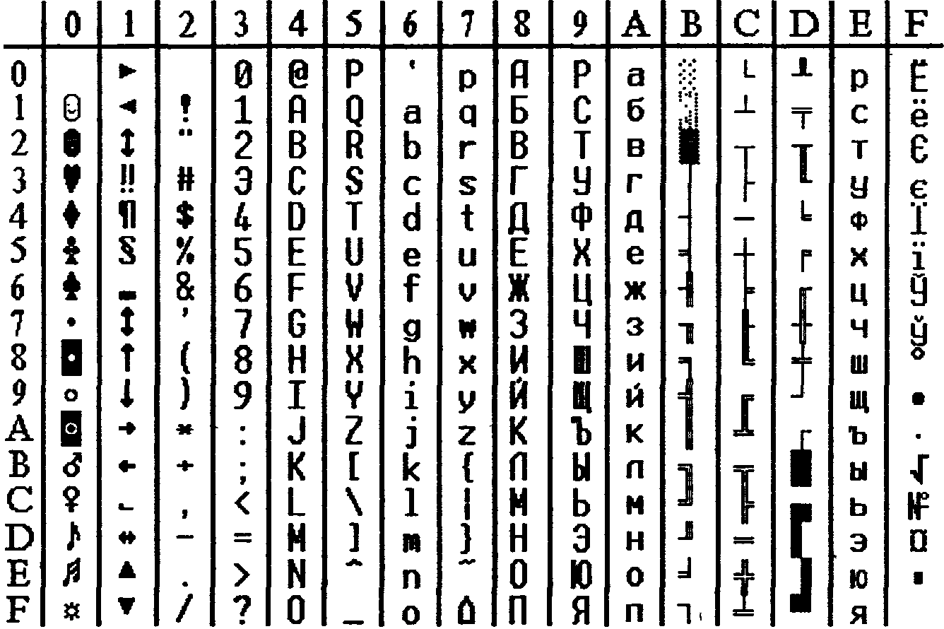 Информатика и ее приложения интернациональны. Это связано как с объективными потребностями человечества в единых правилах и законах хранения, передачи и обработки информации, так и с тем, что в этой сфере деятельности (особенно в ее прикладной части) заметен приоритет одной страны, которая благодаря этому получает возможность “диктовать моду”. Компьютер считают универсальным преобразователем информации. Тексты на естественных языках и числа, математические и специальные символы – одним словом все, что в быту или в профессиональной деятельности может быть необходимо человеку, должно иметь возможность быть введенным в компьютер. В силу безусловного приоритета двоичной системы счисления при внутреннем представлении информации в компьютере кодирование “внешних” символов основывается на сопоставлении каждому из них определенной группы двоичных знаков. При этом из технических соображений и из соображений удобства кодирования-декодирования следует пользоваться равномерными кодами, т.е. двоичными группами равной длины. Попробуем подсчитать наиболее короткую длину такой комбинации с точки зрения человека, заинтересованного в использовании лишь одного естественного алфавита – скажем, английского: 26 букв следует умножить на 2 (прописные и строчные) – итого 52; 10 цифр, будем считать, 10 знаков препинания; 10 разделительных знаков (три вида скобок, пробел и др.), знаки привычных математических действий, несколько специальных символов (типа #, $, & и др.) – итого ~ 100. Точный подсчет здесь не нужен, поскольку нам предстоит решить простейшую задачу: имея, скажем, равномерный код из групп по N двоичных знаков, сколько можно образовать разных кодовых комбинаций. Ответ очевиден К = 2N. Итак, при N = 6 К = 64 – явно мало, при N = 7 К = 128 – вполне достаточно. Однако, для кодирования нескольких (хотя бы двух) естественных алфавитов (плюс все отмеченные выше знаки) и этого недостаточно. Минимально достаточное значение N в этом случае 8; имея 256 комбинаций двоичных символов, вполне можно решить указанную задачу. Поскольку 8 двоичных символов составляют 1 байт, то говорят о системах “байтового” кодирования. Наиболее распространены две такие системы: EBCDIC (Extended Binary Coded Decimal Interchange Code) и ASCII (American Standard Information Interchange). Первая – исторически тяготеет к “большим” машинам, вторая чаще используется на мини- и микро-ЭВМ (включая персональные компьютеры). Ознакомимся подробнее именно с ASCII, созданной в 1963 г. В своей первоначальной версии это – система семибитного кодирования. Она ограничивалась одним естественным алфавитом (английским), цифрами и набором различных символов, включая “символы пишущей машинки” (привычные знаки препинания, знаки математических действий и др.) и “управляющие символы”. Примеры последних легко найти на клавиатуре компьютера: для микро-ЭВМ, например, DEL – знак удаления символа. В следующей версии фирма IBM перешла на расширенную 8-битную кодировку. В ней первые 128 символов совпадают с исходными и имеют коды со старшим битом равным нулю, а остальные коды отданы под буквы некоторых европейских языков, в основе которых лежит латиница, греческие буквы, математические символы (скажем, знак квадратного корня) и символы псевдографики. С помощью последних можно создавать таблицы, несложные схемы и др. Для представления букв русского языка (кирилли